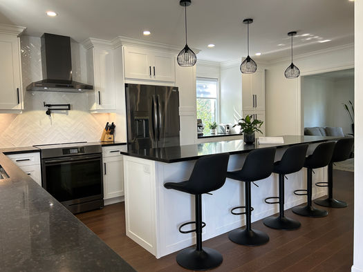 Les rez-de-chaussée à aire ouverte, qui regroupent la cuisine, la salle à manger et le salon, offrent une occasion exceptionnelle d’agrandir et de rehausser le cœur de la maison. Dans le projet Tiffany Kitchen, nous avons transformé l’espace en un lieu lumineux et accueillant où cuisiner, manger et se rassembler se font naturellement. Finies les cuisines dissimulées — désormais, un magnifique îlot de 12 pieds devient l’élément central du design, alliant fonctionnalité et espace de rassemblement pour la famille et les amis.